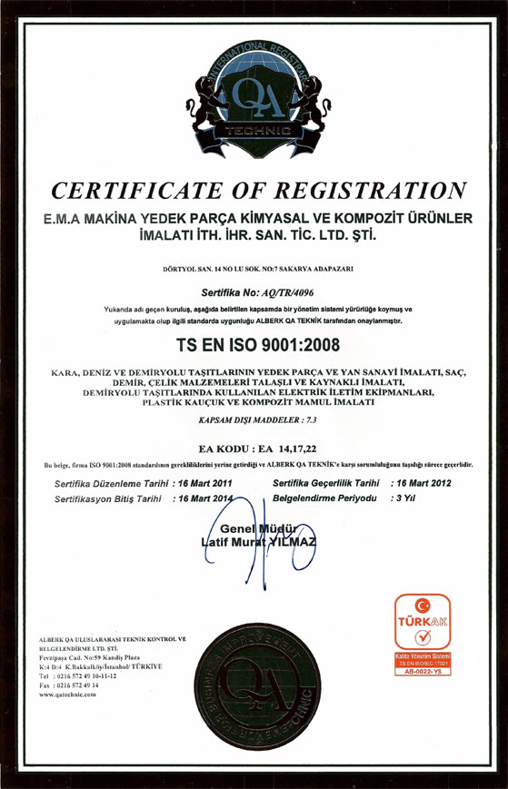 | E.M.A. MAKİNA YEDEK PARÇA KİMYASAL VE KOMPOZİT ÜR. İMALAT İTHALAT - İHRACAT SAN. TİC. LTD. ŞTİ. |